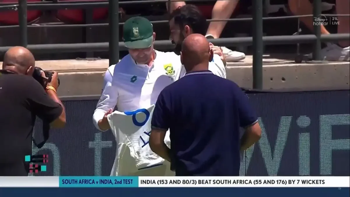 Proteas stand-in skipper Dean Elgar who played his last Test match during the Cape Town Test against India was seen sharing a heartwarming moment with former India skipper Virat Kohli. Kohli was spotted giving his jersey to the South Africa opener, who had announced his retirement prior to the 2-match the Test series. Elgar stepped in for Temba Bavuma, who had to sit out of the decisive match owing to a hamstring injury.