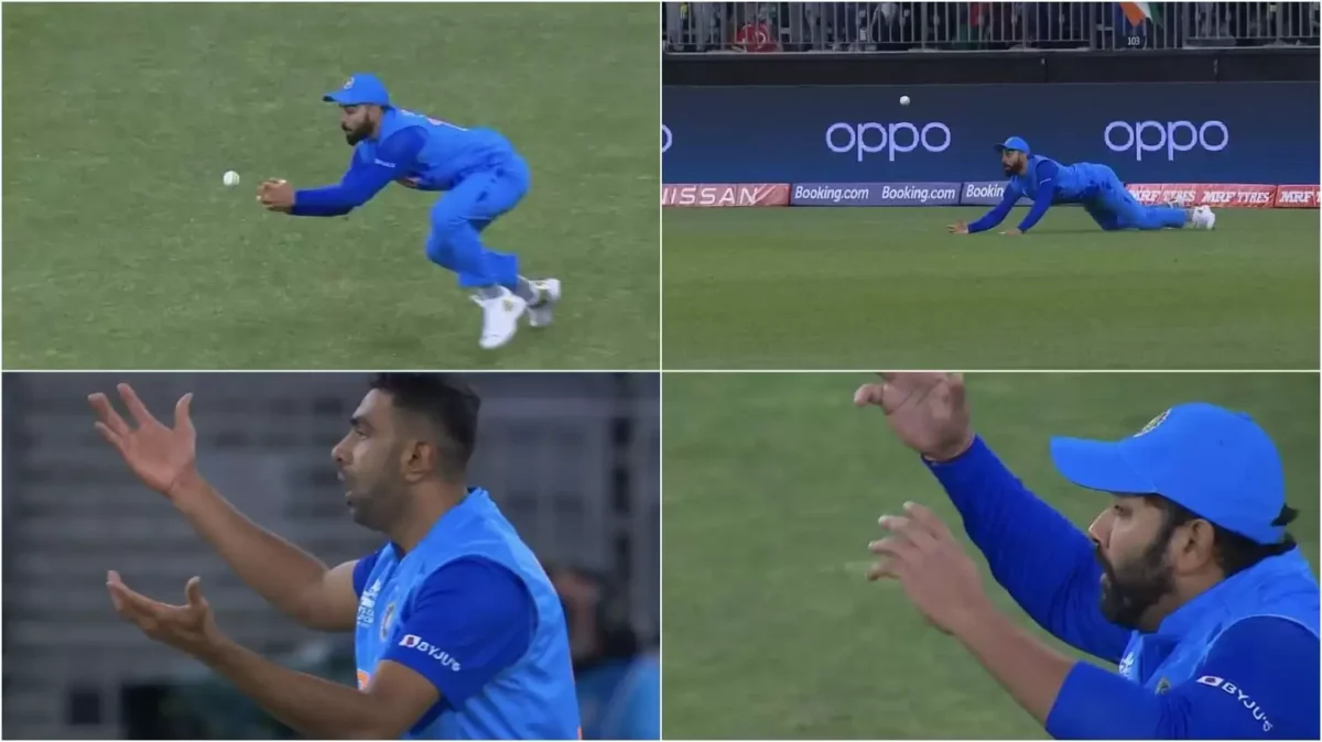 Watch: Virat Kohli puts down a sitter; Ashwin, Rohit cannot believe it