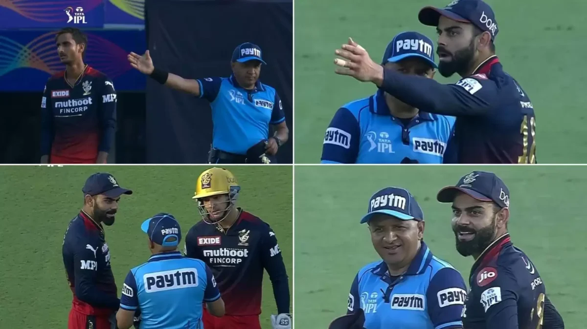 Umpire Virender Sharma reverted his original decision and made a no-ball call, which brought a reaction out of Virat Kohli.