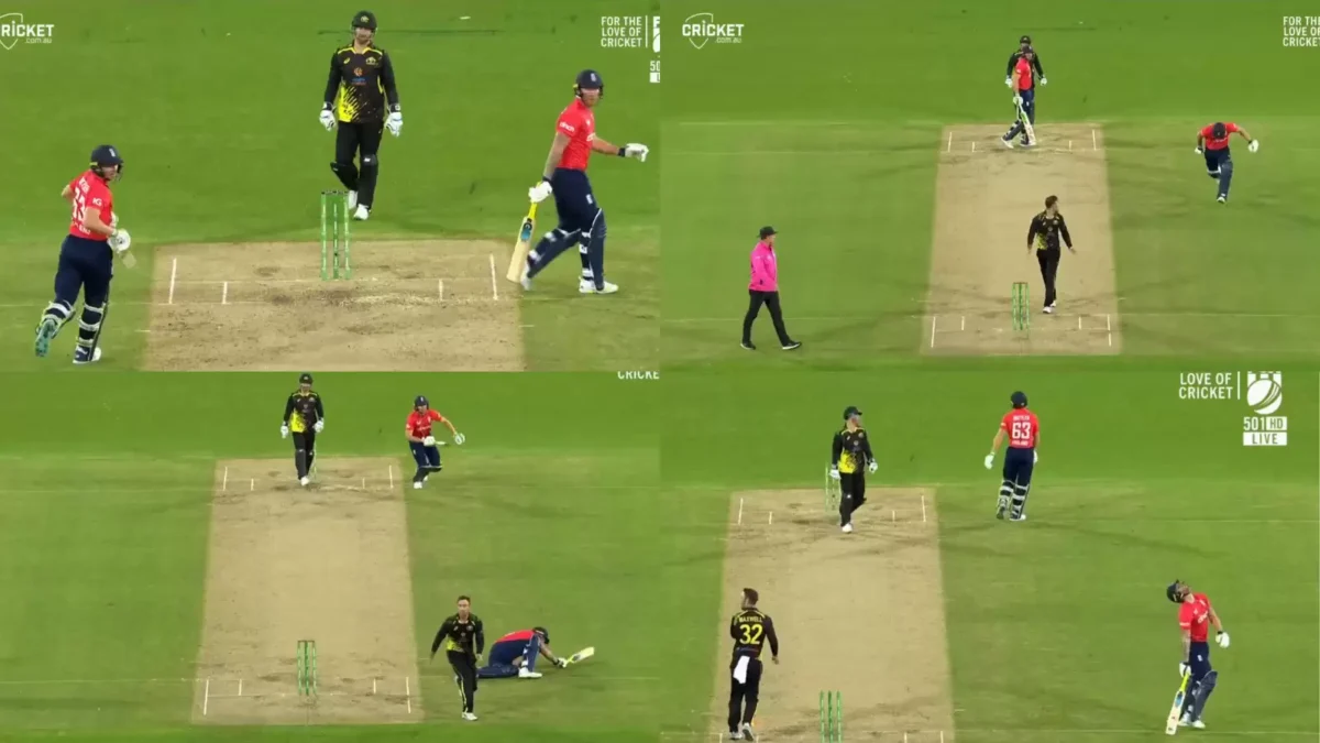 In a rather funny incident, Ben Stokes assumed that he had middled the ball for a boundary and walked off, only to discover late that it would be fielded, and fell down while attempting runs in an afterthought. The incident occured on the final ball of the England innings in a rain-marred third T20I against hosts Australia at the Manuka Oval, Canberra on Friday, October 14.