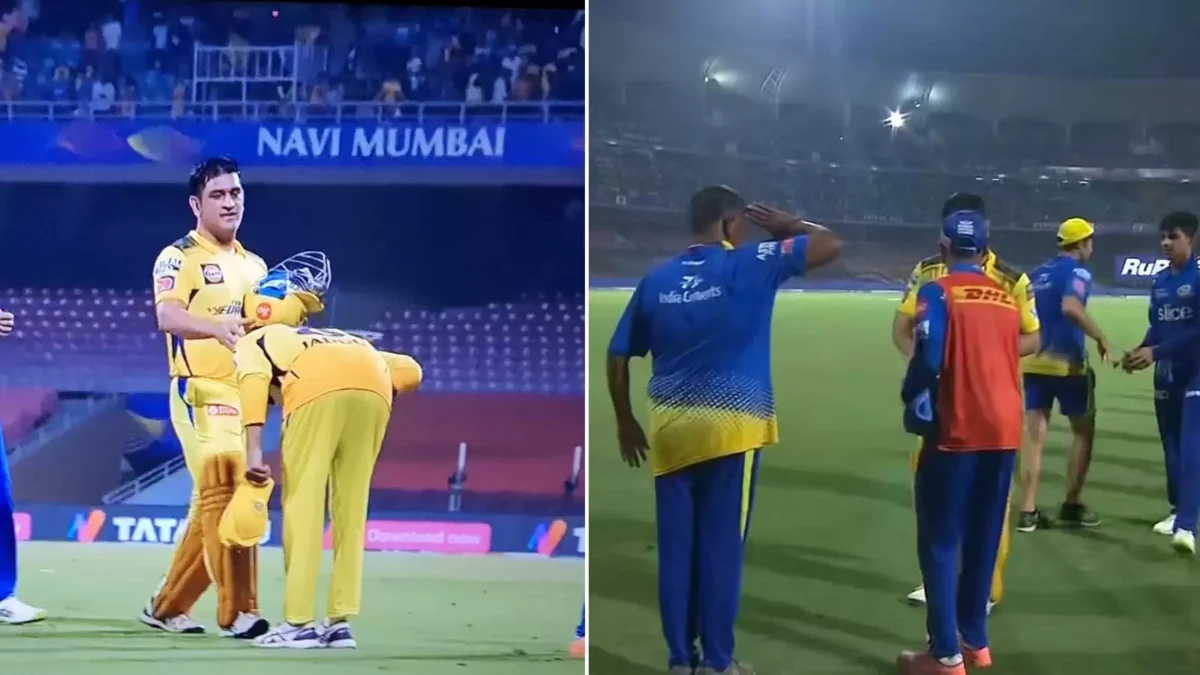 Soon after he finished off the run chase, the crowd were erupting in joy and the CSK players were ecstatic. However, it was Jadeja’s reaction that won hearts as the CSK skipper went straight to Dhoni and fell on his feet. The CSK support staff member, clearly in awe of Dhoni, gave him a salute as he walked back, barely even celebrating the win.