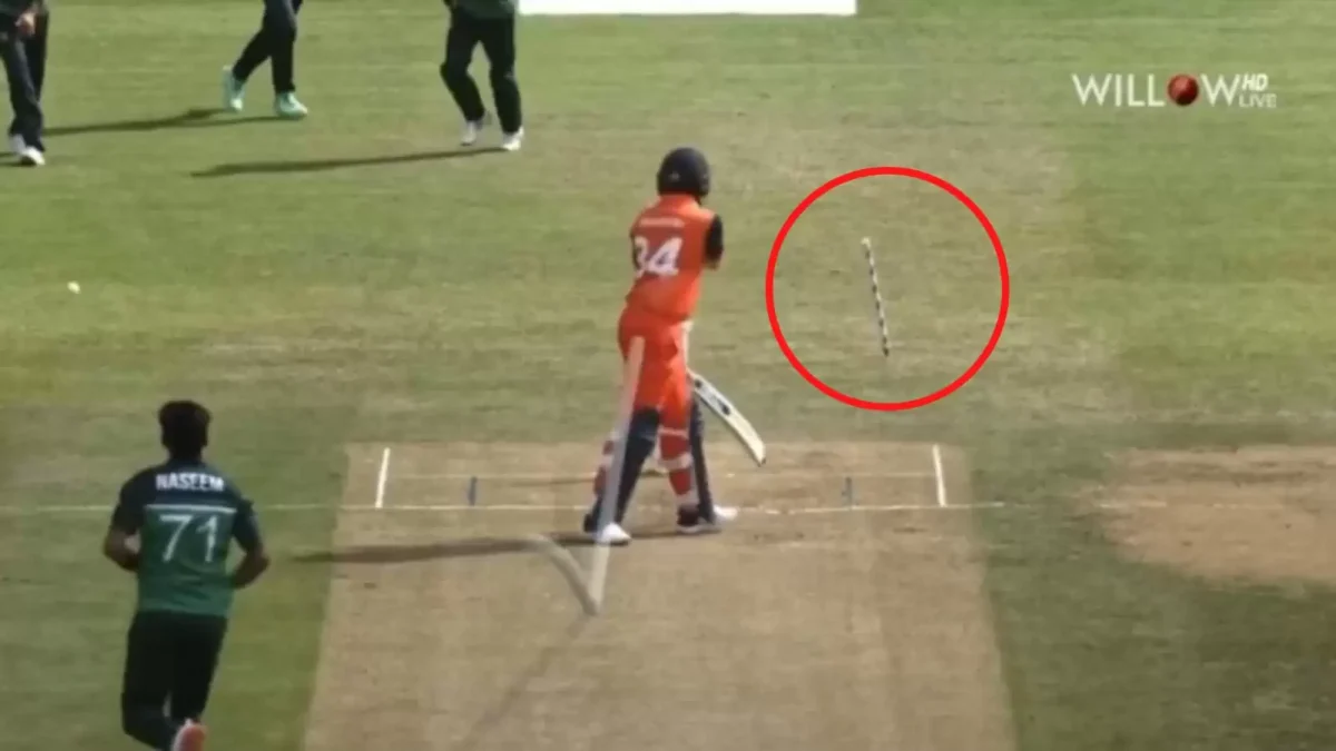 Pakistan played their second ODI against the Netherlands and the hosts chose to bat first. Netherlands were only able to put up a below-par score of 186, thanks to stable knocks from Bas de Leed and Tom Cooper. The hosts had a rocky start and were already 3 wickets down at the score of 8. However, what stood out was Wesley Barresi’s wicket. Pakistani fast bowler Naseem Shah sent Barresi’s stumps flying with his brilliant delivery. As Barresi attempted to drive, Naseem threw the ball around off and it quickly turned sharply back in.