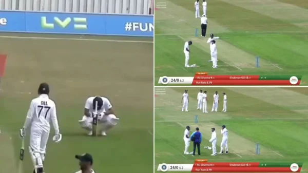The openers and Rishabh Pant, who has taken the wicketkeeping duties for Leicestershire for the game, had a bit of a laugh over the incident as the sequence went through. After a break of minute-and-a-half, Rohit was ready to resume his innings.