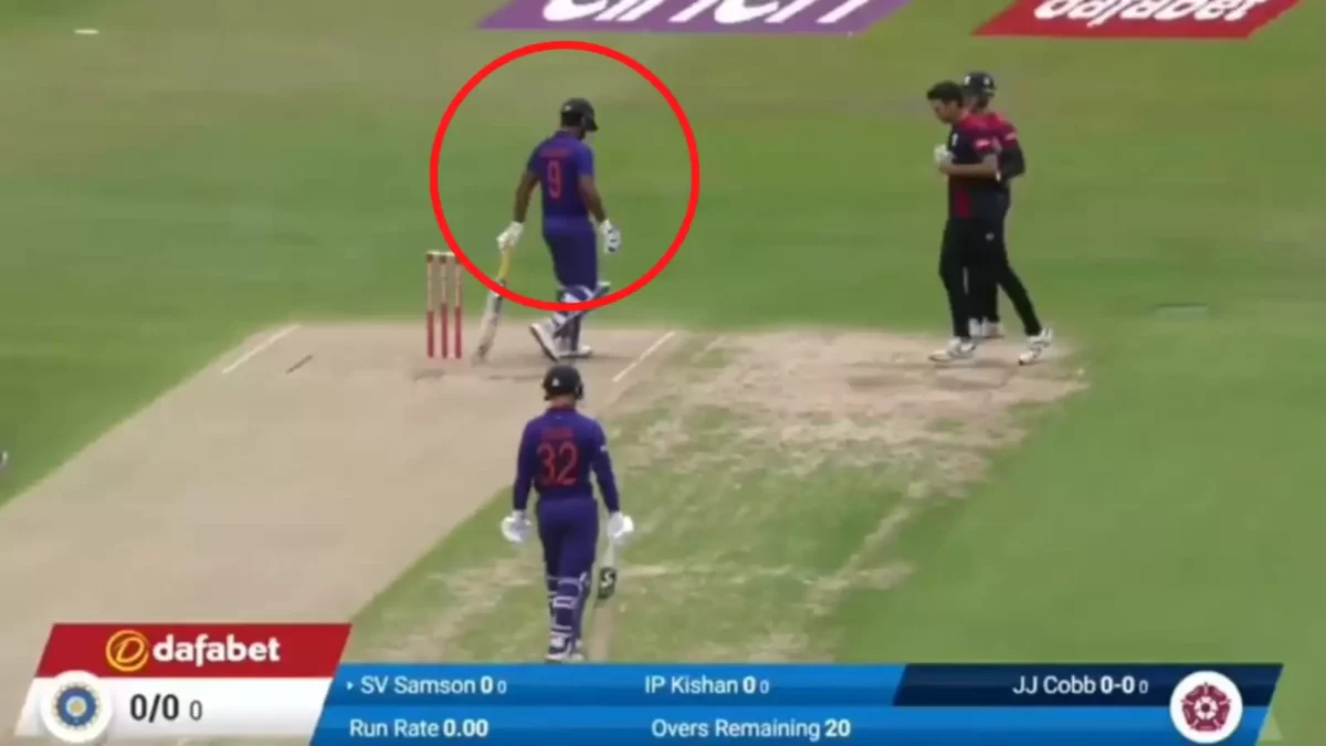 Samson was seen walking out to open alongside Ishan Kishan in India’s innings and took the first strike against part-time off-spinner Joshua Cobb. The wicketkeeper batter tried to play a nonchalant leg glance first ball, but missed it entirely to be trapped in front for a golden duck.