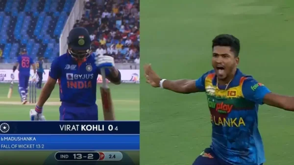 Virat Kohli was cleaned up for a four-ball duck by Dilshan Madushanka in a crucial Asia Cup 2022 encounter in Dubai on Tuesday, September 6.