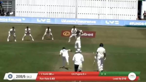 Walking in to bat at No.7 in the second innings, behind the likes of Ravindra Jadeja and Shradul Thakur, Kohli combined with Cheteshwar Pujara in a good partnership in which Kohli was the aggressor.