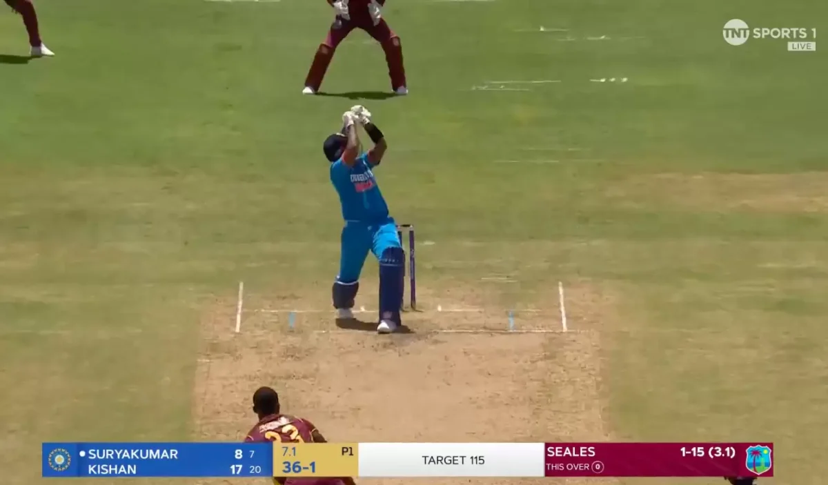 Yadav, who had displayed outstanding performances in the IPL 2023 season, showcased his talent during his brief stay at the wicket. He faced Dominic Drakes and executed his now-famous Supla Shot, sending the ball soaring beyond the boundary for a six.