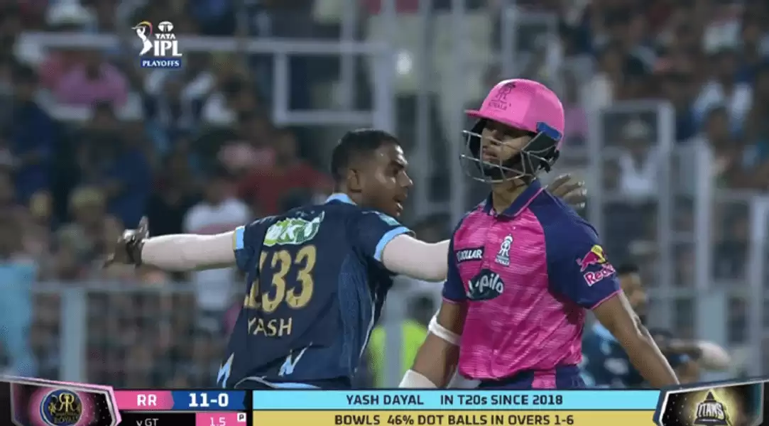 The incident is from the second over of the RR’s first-innings batting effort in the much-anticipated IPL 2022 playoff encounter. Facing Dayal from the over-the-wicket angle for the left-arm pacer, Yashasvi Jaiswal went for a full-blooded drive over the in-field.