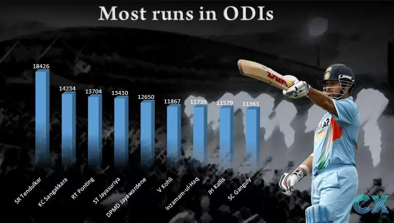 There is nobody who has come close to his total tally of ODI runs yet. Sri Lanka’s Kumar Sangakkara is the second in the list with 14234 runs to his name followed by Ricky Ponting (13704), Sanath Jayasuriya (13430) and Mahela Jayawardene (12650) at third, fourth and fifth respectively.