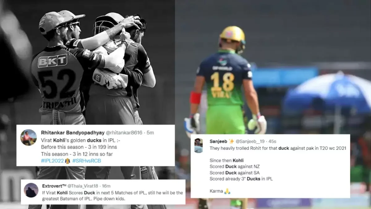 Virat Kohli’s horrific IPL 2022 continued with another golden duck to his name against the Sunrisers Hyderabad (SRH) on Sunday (May 8) afternoon.