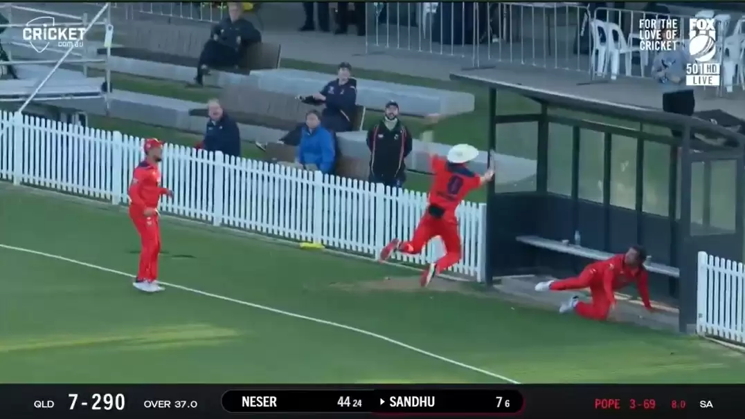 A fielding effort from Marsh Cup has grabbed the limelight where three individuals combined to try and execute a caught dismissal near the boundary ropes before things fell apart. The effort was on display during Wednesday’s (October 23) Marsh Cup Australian domestic List A encounter between Queensland and South Australia.