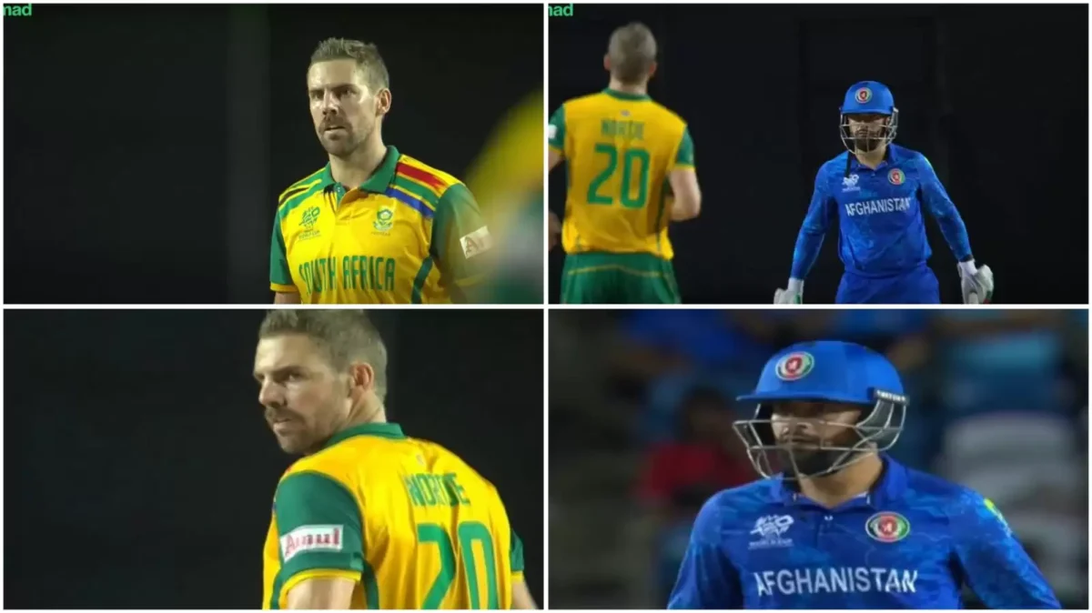 Rashid Khan and Anrich Nortje were involved in a heated exchange during the T20 World Cup 2024 semi-final between Afghanistan and South Africa.