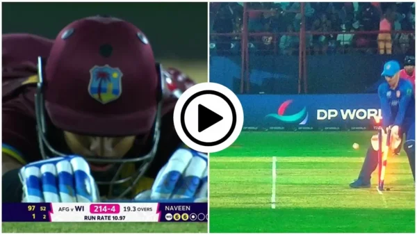 Notably, Afghanistan star cricketer Azmatullah Omarzai caught the ball from deep and hit the stumps quickly with a clear throw to the keeper’s end. Nicholas Pooran made a heroic effort to reach the crease, but the TV umpire confirmed he fell short, resulting in a run-out.