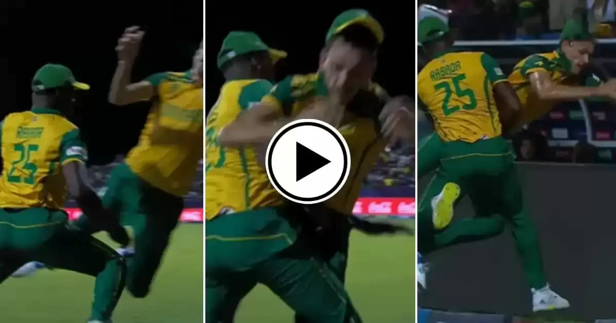 Left-arm seamer Marco Jansen was at the long on, while Kagiso Rabada, who was at the long off, rushed along the boundary rope in a bid to stop the six. Jansen nearly caught the ball in mid-air while Rabada rushed to catch it, but the two brutally collided before the former could get the ball to play in a move to save six runs.