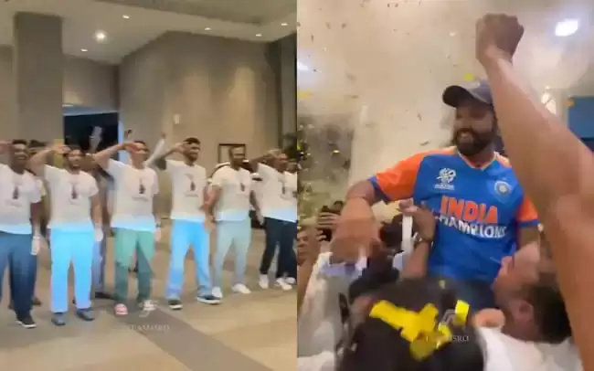 Rohit Sharma received a heartwarming tribute from his childhood friends and family members, whereas his close friend Tilak Varma was also present to welcome Rohit at his house after winning the T20 World Cup.