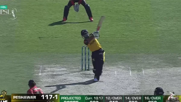 The Peshawar Zalmi skipper and modern-day stalwart blazed his willow away for a maximum down the ground in the PSL 2023 game.