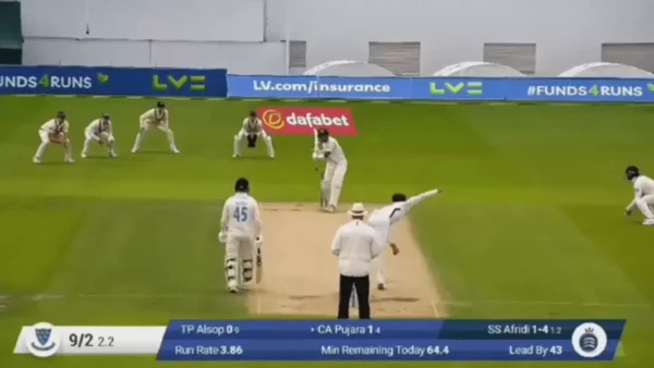 However, the tall-statured Pujara was up to task and gave the ball the full monte for a shot that sailed well over the deep-third fielder for a maximum. A clip of same from Sussex’s YouTube channel is doing the rounds on Twitter, with the quality of Pujara’s stroke leaving even Afridi shell-shocked.