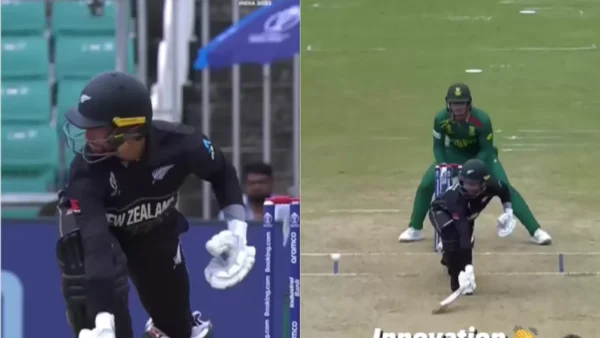 Devon Conway executed a bold one-handed paddle-sweep for a boundary during New Zealand’s warm-up match against South Africa in the 2023 World Cup held at Thiruvananthapuram on October 2 (Monday). After facing a golden duck in the first warm-up game against Pakistan, Conway registered a commendable kcock of 73-ball 78 against South Africa. His innings included one six and 11 fours, featuring a remarkable shot for a boundary in the 17th over.