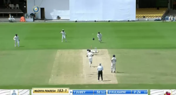 Despite him batting on 56 off 113 deliveries in MP’s first-innings at the time, Dubey looked clueless when Dhawal Kulkarni got his bouncer to rise sharply into the right-hander and played it in a bizarre fashion that no coach would advise his wards to do.