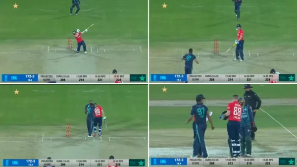 The incident is from the 17th over of the England first-innings batting effort in the third T20I in Karachi.