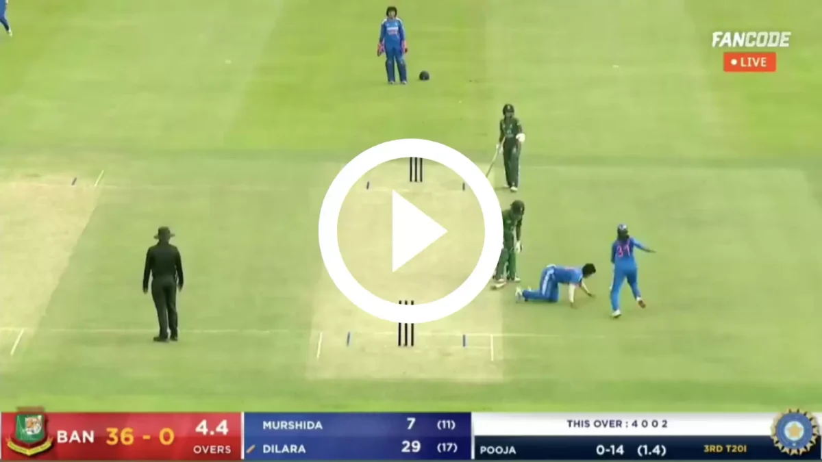 To the amusement of the commentators, the Bangladeshi opener forgot to get back to the crease which created an opportunity for Vastrakar and fielder Shreyanka Patil to attempt a runout. However, Pooja’s slip while retrieving the ball and Shreyanka’s miss on the stumps led to a moment of confusion before Dilara hurried back to her position.