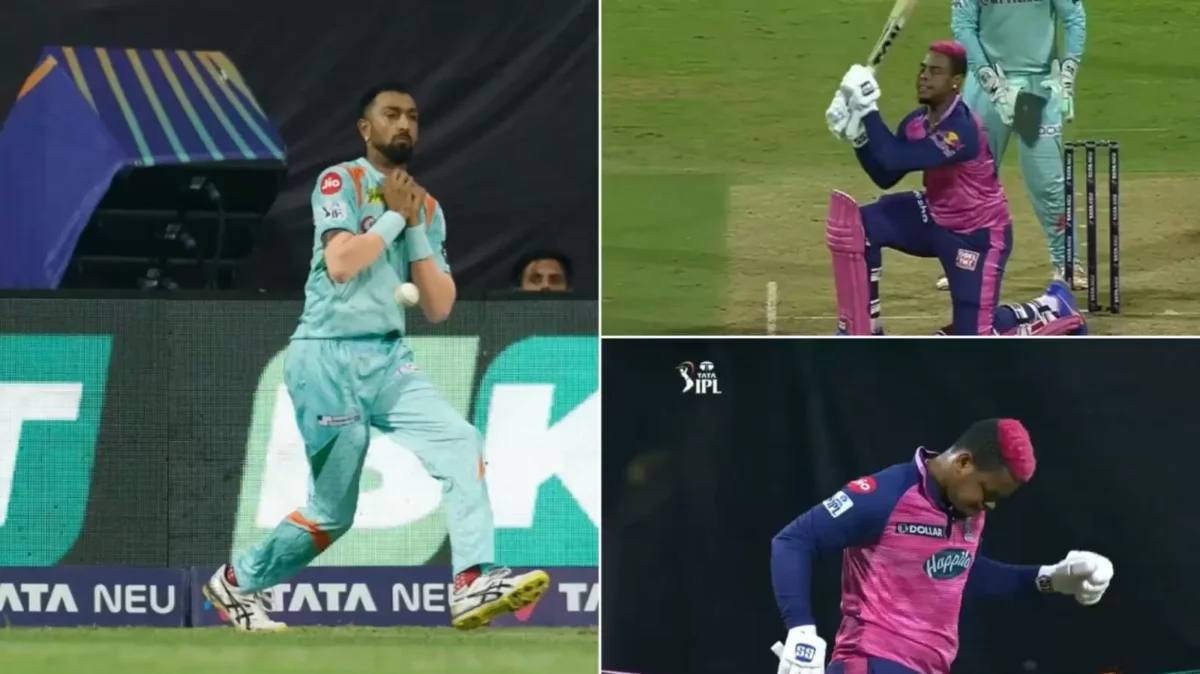 But for reasons only he knows, Krunal went for the with his hands reverse-cupped and ended up spilling it. Shimron Hetmyer was batting on 14 then and made the Super Giants pay batting till the end to smash a sensational unbeaten 59 off just 36 deliveries. He hit six sixes and one four during his stay in the middle to propel the Royals to 165 in their 20 overs.