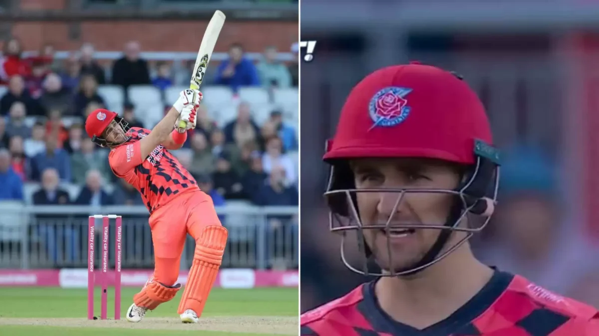 Matthew Revis was at the receiving end of the wrath as the England batter whacked the length, in the slot delivery over cow corner fiercely. The hit was so powerful that the ball literally went out of the stadium. The commentator on air was incredibly excited looking at the maximum and felt he matched the biggest six in the IPL with his first maximum of the T20 Blast itself.