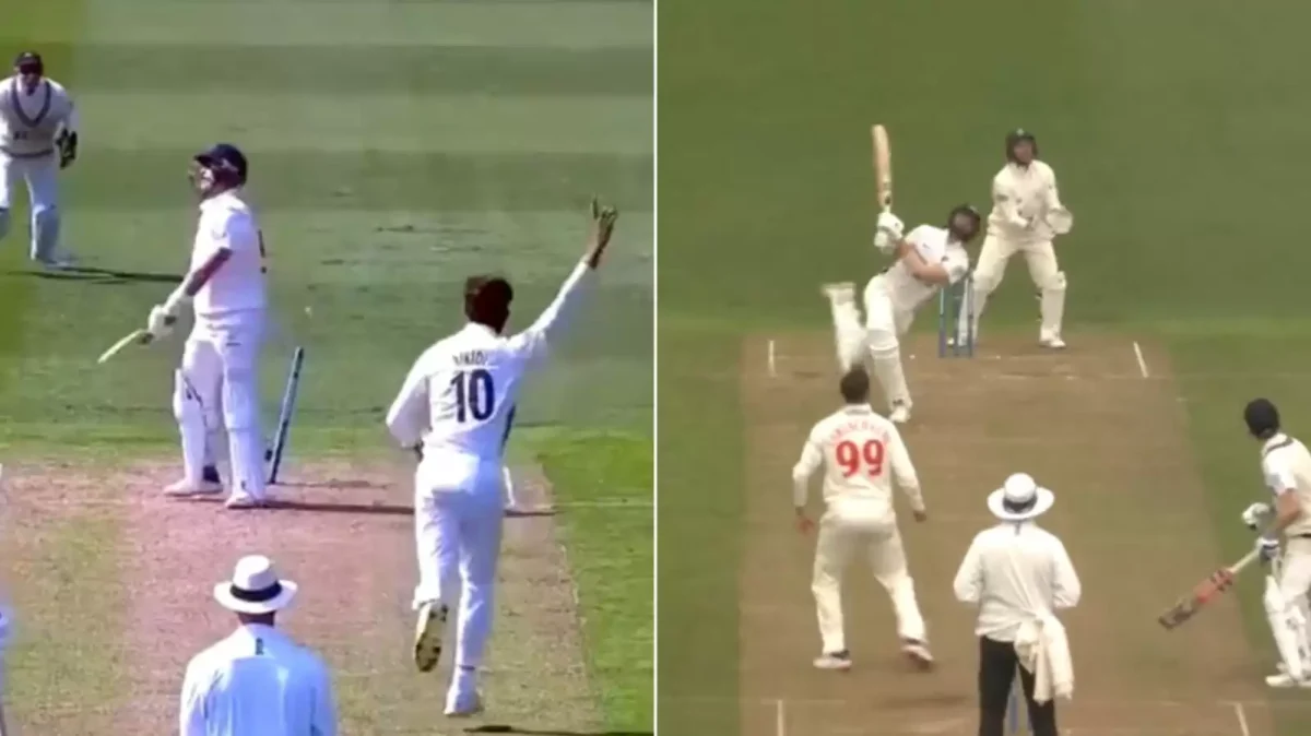 Intent on getting the big shots going at No.10 to try and stretch Middlesex’s first-innings lead, Afridi danced down the ground and went for the big swing of the bat, only to be done in by the dip and turn on the delivery from Marnus Labushagne and sky the ball to the short cover fielder.