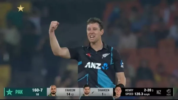 Despite two wickets, Matt Henry was taken off the attack. But his return at the start of the 19th over resulted in completion of the hat-trick, with left-hander Shaheen Afridi going for a wild slog off a full-pitched delivery that could only go as far as the long-on fielder.