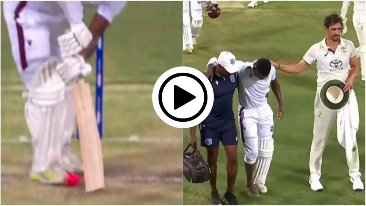 Shamar Joseph has to retire hurt after this toe-crusher from Mitch Starc!