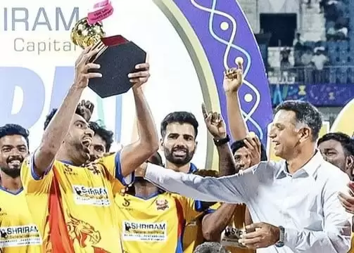 In dramatic seasons at Chepauk, Rahul Dravid presented Ashwin’s team Dindigul Dragons with the TNPL trophy after the win.