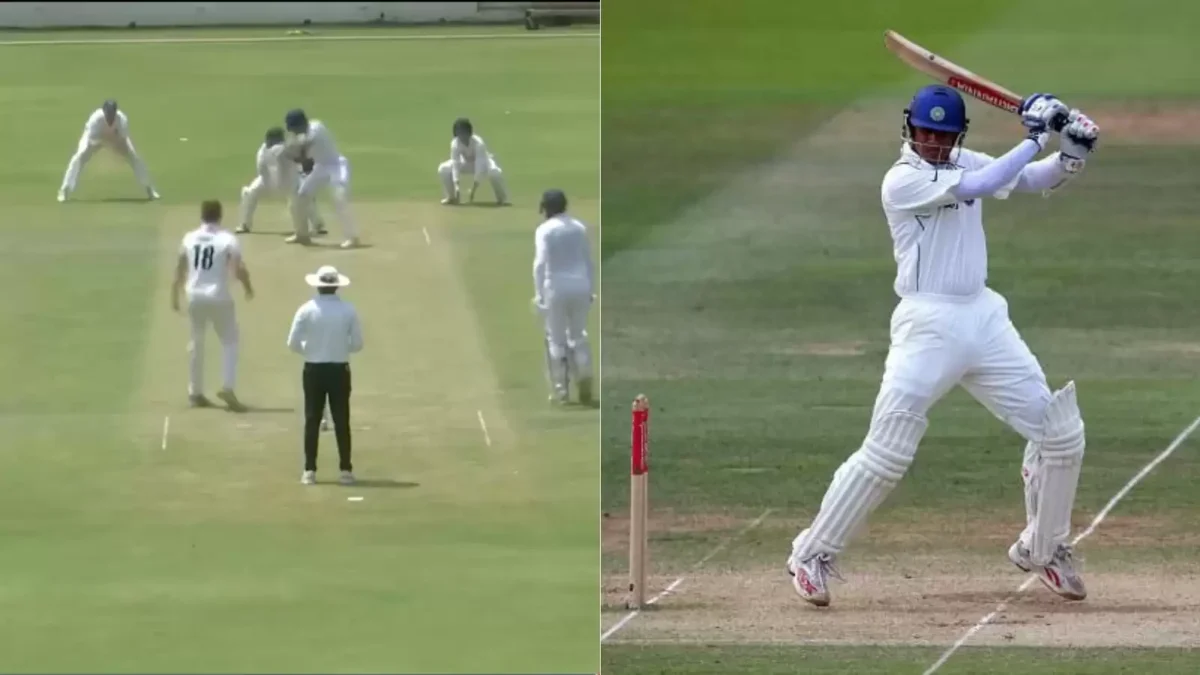 Samit played the shot in a two-day warm-up match between Karnataka State Cricket Association XI and Lancashire.