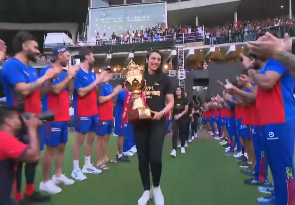 In an event hosted at the M Chinnaswamy Stadium called ‘RCB Unbox’, captain Smriti Mandhana walked in holding the WPL trophy in her hand as the crowd roared for the champions.