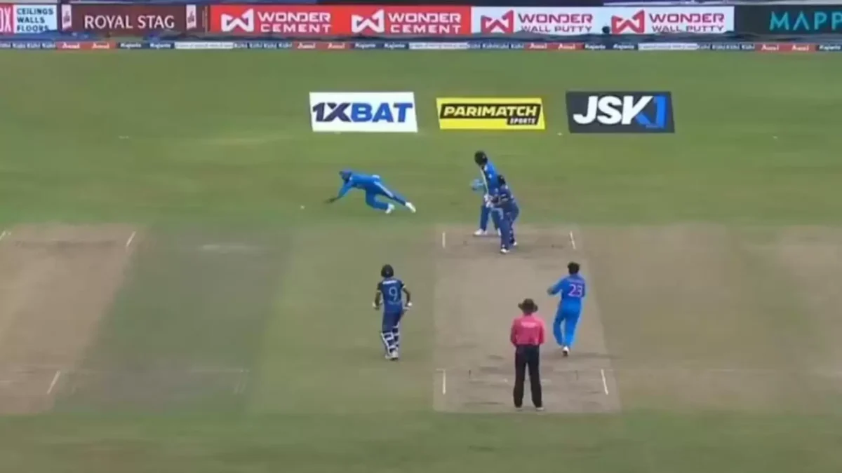 The fielder moved to his right in the direction of the catch but was a millisecond late to start, and while he got both hands on the ball, Rohit couldn’t hold it. It ballooned out of his hands, and Rohit dropped an easy catch, for which he was massively disappointed.