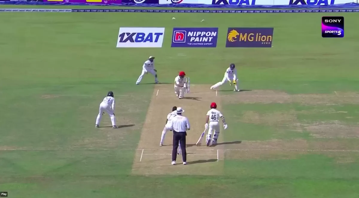 Sri Lankan wicketkeeper Sadeera Samarawickrama displayed a brilliant presence of mind to deny Rahmat Shah his second Test hundred during the ongoing one-off Test between Sri Lanka and Afghanistan. Sadeera demonstrated excellent reading of Prabath Jayasuriya’s delivery and strategically positioned himself off the leg side to secure a remarkable low catch at leg slip. The Afghan batter attempted a sweep shot in search of a boundary and nearly succeeded, but Sadeera’s clever maneuver left both the batter and the spectators astounded.