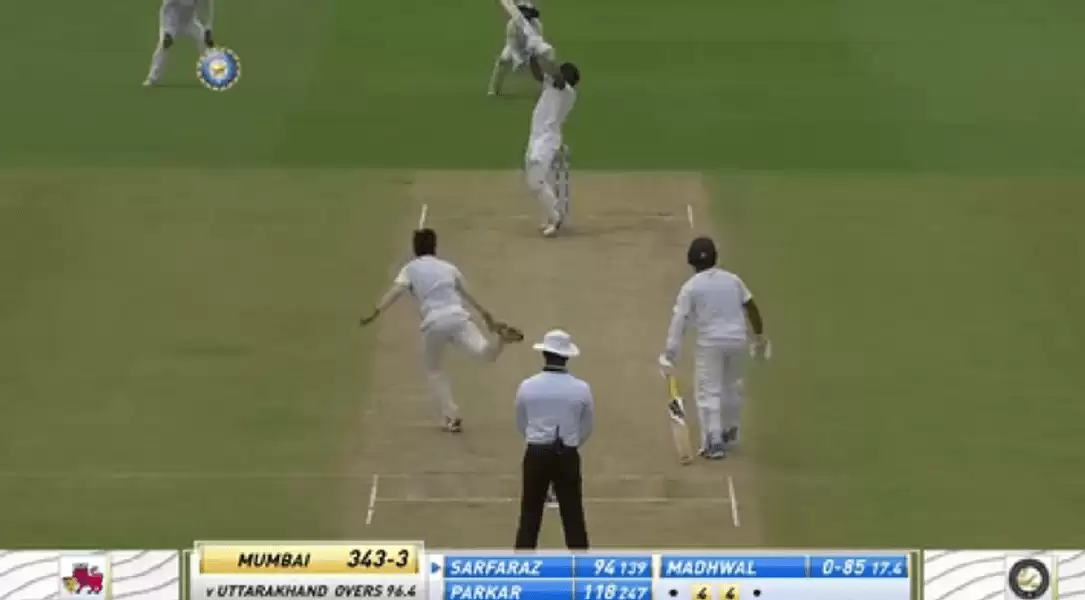 An explosive streak about Khan’s game was visible even in the way he reached his hundred, playing a Tendulkaresque upper-cut for six over the deep-third fielder. The moment can be seen in the clip below from 1:49 onwards.