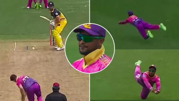 Bangladesh star cricketer Shakib Al Hasan showcased his fielding prowess in the ongoing G20 Canada tournament by grabbing a world-class catch to dismiss Australia’s star all-rounder Marcus Stoinis. It was Bangla Tigers Mississauga skipper Shakib Al Hasan who was at his beast against the Marcus Stoinis when the latter miscued a heave, and the former was there to take the magnificent catch of him to oust the Aussie star.