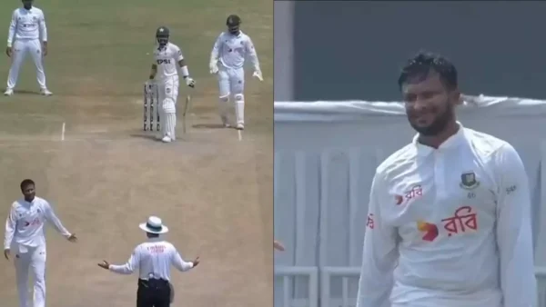 Despite the visiting sides standing in a very strong position, Bangladesh star all-rounder and former captain Shakib Al Hasan infuriated the umpire with his bizarre act on the field. The star cricketer, known for his fiery temperament, was visibly a little furious when Pakistan’s star batter, Mohammed Rizwan, backed out early in his run-up. Following the same, Shakib threw the ball in anger towards Pakistani batter Rizwan, which wicketkeeper Liton Das grabbed.