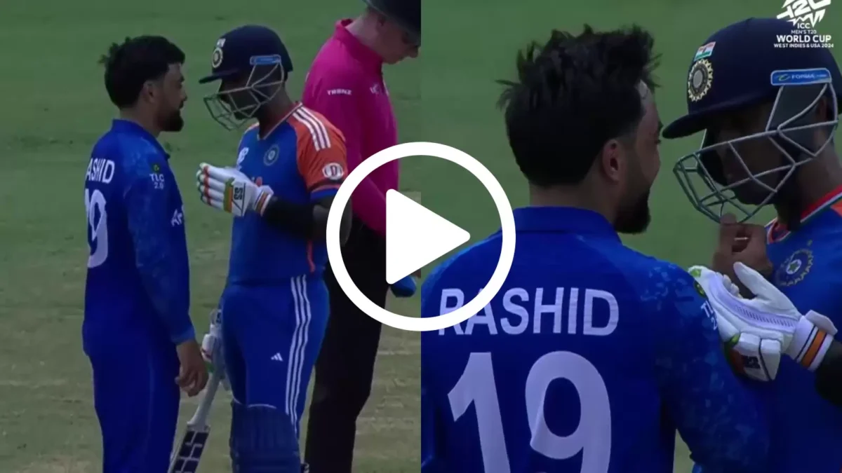 Rashid Khan and Suryakumar Yadav were in a short friendly conversation during the 11th over of the first innings in the game between Afghanistan and India. The chat broke after Suryakumar Yadav attempted sweep shots on three consecutive deliveries, two of which went for boundaries (one four and a six).