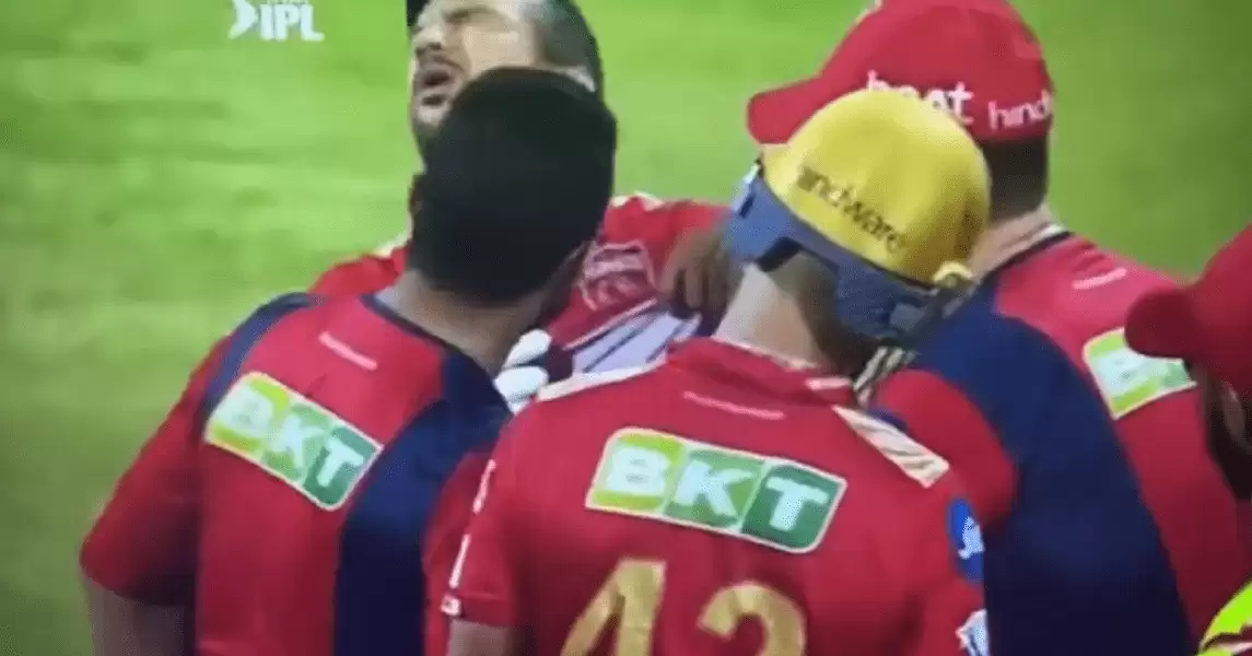 The incident is from the back half of the seventh over in PBKS’ run-chase. Having just walked in at No.4, PBKS captain Agarwal faced up to SRH’s super quick Umran Malik. Backing his strengths, Malik got one to fizz past Agarwal’s willow on an attempted shot through the on-side, before the ball thumped onto his ribs.