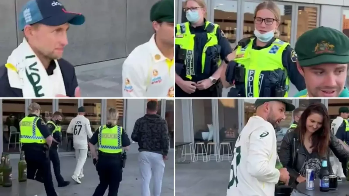Looks a lot like Jimmy Anderson, Joe Root, Nathan Lyon and Alex Carey cracked on til dawn after the day/nighter test. This being Australia, the police turned up to shut down the fun. pic.twitter.com/V4gyxLmUUT