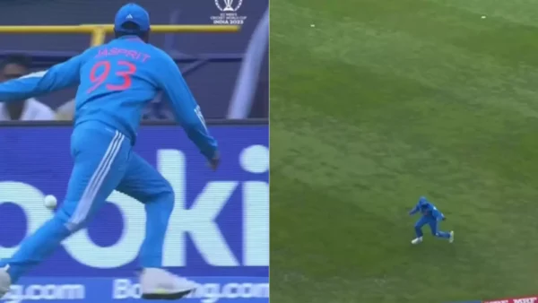 This incident occurred during the 33rd over of New Zealand’s innings. Kuldeep Yadav delivered a flighted ball outside the off-stump and Mitchell executed an aerial shot towards long-off. Unfortunately, Bumrah couldn’t hold onto the ball, resulting in a boundary.