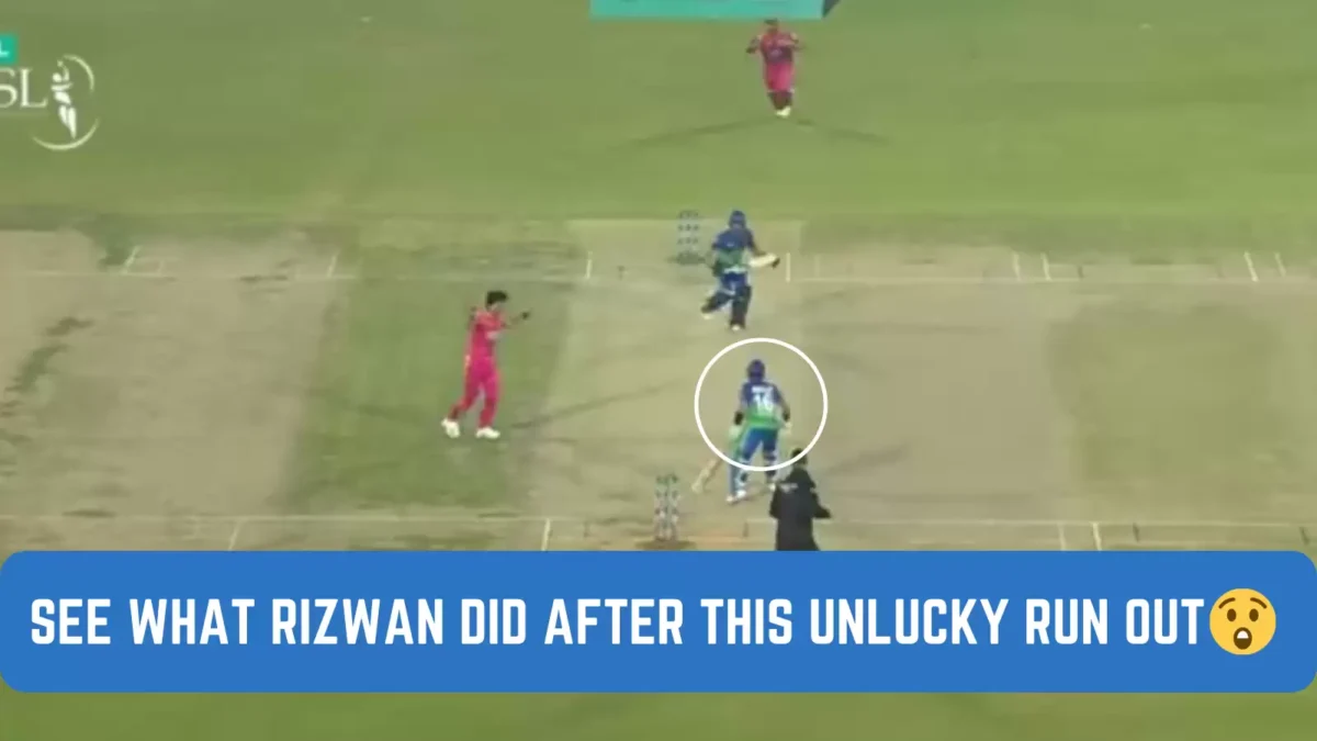In the fifth ball of the fifth over, Shan Masood tried to go downtown to fetch a four off Mohammad Wasim Jr. The bowler tried to stop the ball in his run-up, but failed to do so. However, the ball deflected off Wasim Jr’s hands and crashed onto the stumps. Rizwan was well out of his crease and he started making the walk-back immediately.