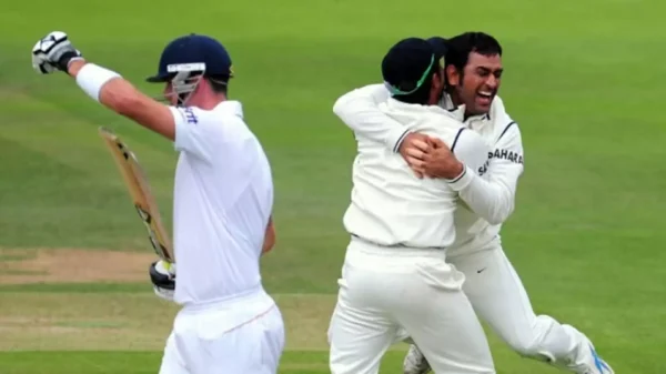 In the 2011 Lord’s Test, the 100th between India and England and the 2000th overall, Dhoni, the captain then, took upon himself to send down some overs with his premier quick Zaheer Khan unavailable with injury. With the Lord’s surface doing its tricks, Dhoni had a close leg-before call against Kevin Pietersen turned down, before Billy Bowden adjudged the batter caught behind not long after. Pietersen managed to overturn the call on review, and went on to get a game-setting 202*. Dhoni returned 8-1-23-0 and 2-0-16-0 in the Test.