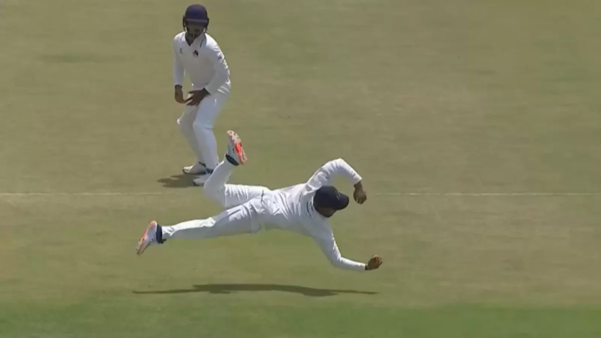 In Uttarakhand’s first-innings, Shaw caught Dikshanshu Negi diving full-stretched to his right off Mulani. The left-arm spinner flighted one from round the wicket, and the right-hander went for a flick across the line only to manage a thick outside edge. Shaw showed brilliant reflexes, racting instantaneously to leap towards his right to complete a one-handed catch.
