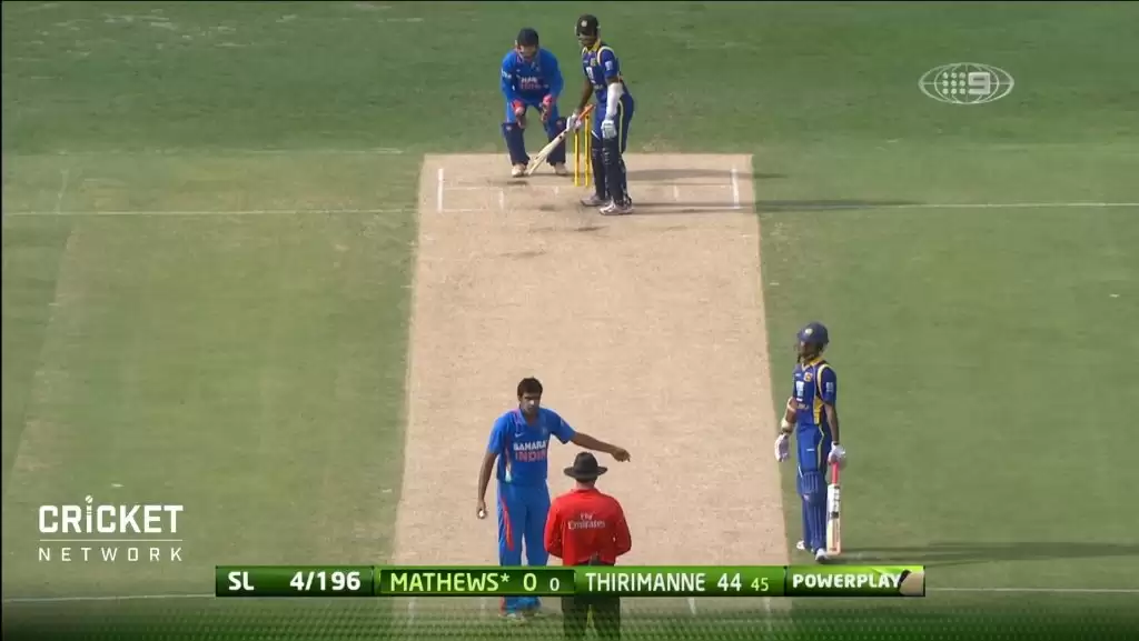 On the third ball of the 40th over, with Sri Lanka 196/4, Ashwin ran up to bowl for Angelo Mathews. However, the bowler stopped just before going ahead with his delivery stride, and took out the bails at the other end where Thirimanne, batting well on 44 at the time, was found well outside the crease.