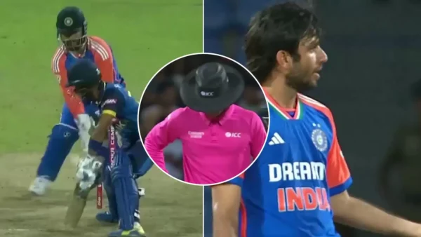 Nissanka tried to late-cut it, but failed to connect and the ball hit his pad. Indian players though were not quite interested initially, and just made a polite late enquiry. The umpire though after some hesitation raised his finger