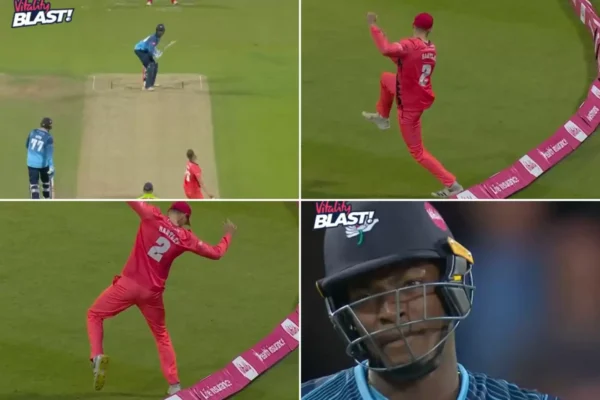 Watch: Dramatic finish in the T20 Blast! Non-striker celebrates, but sensational close boundary catch with five needed off one ball intercepts win