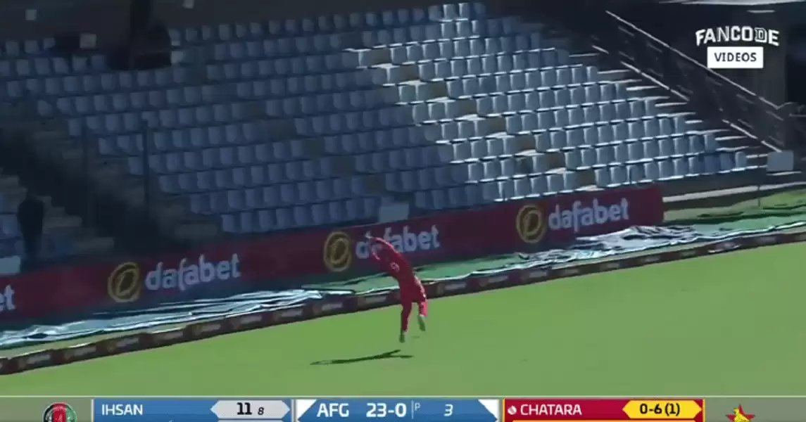 The catch was seen at the start of the fourth over in the Afghanistan first-innings batting effort. Running into bowl at Zazai, who is known for his ferocious leg-side hitting against spin and seam, Chatara made a mistake of bowling one near the batter’s arc and was dispatched for a terrific shot.